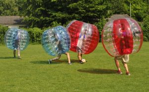Bubble Soccer ist das ultimative Spiel-/Sport- und Spaßerlebnis. Jeder Spieler schlüpft in einen großen aufblasbaren Ball (Loopyball) und anschließend wird einfach Fußball gespielt – so die einfache Theorie. In der Praxis ist natürlich insbesondere der Zweikampf ein Riesenspaß für alle und die Tore werden oft schnell zur Nebensache. Dieser mega lustige Funsport sorgt für grenzenlosen Spaß und unvergessliche Momente. Wenn eine Gruppe Bubble Soccer spielt, ist Lachen garantiert und ganz schnell wollen alle einfach nur noch mitspielen!